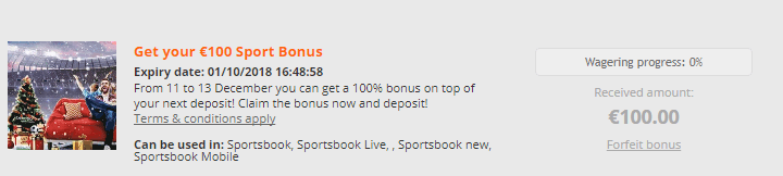 11: Betsson 100% stortingsbonus - open t/m 13 december 23.59 (NL)