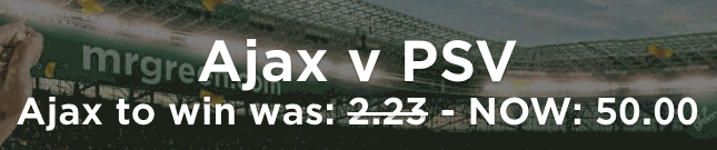 Mr Green:?Ajax?wint van PSV: @ 50 (én een dikke welkomstbonus!)