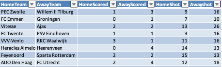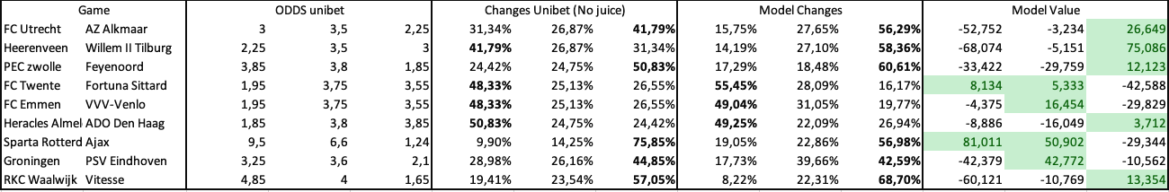 ik zal vanmiddag een screenshot sturen van het model, geladen met Eredivisie data 19/20 voor de eerste ronde 20/21. Nu is er voor veel teams veel veranderd, maar het idee is dat het model groeit over tijd. Noem het V 0.1