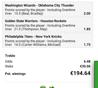Hahah zat zelf ook tussen Lillard en Beal te twijfelen dus heb ze beide. alleen Lillard met stake 10Thanks man, ik heb lillard ipv Bradley succes vanacht (y)