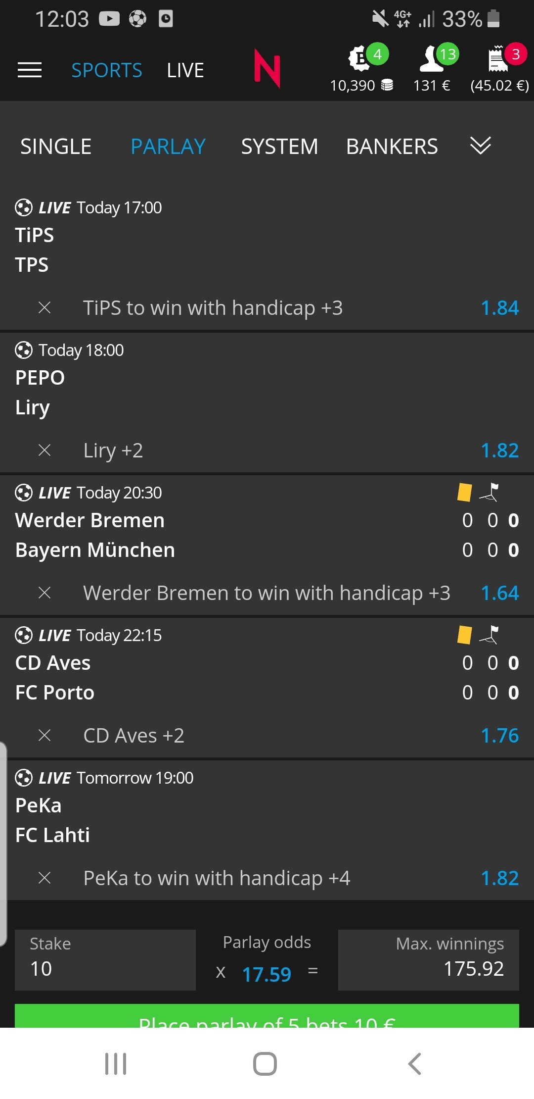 Slechte pick, prima voorbeeld ;) in blessuretijd een eigen goal zou wel ns een fix kunnen zijn ;) Een 4-0 uitslag verwacht je hier niet, de koploper won maar met 2-1 van Vitkovice laatst. Maar t gaat om het voorbeeld ;) In de 77e min viel de 3-0 en op dat moment had je een tegenbet kunnen zetten of een over om je verlies te mininaliseren. Moet je ff rekenen wat je moet inzetten. Bij 3-0 was je bet void geweest sowieso. Helaas viel de 4-0 nog, had je een over had je iig nog wat terug gepakt. Mooier was 3-0 geweest dan zie je dus dat bij +2.5 je bet kapot was geweest maar door de 0-3 draw was je bet void geweest en had je je geld terug gehad. Dat is het idee, nu nog betere picks maken ;)