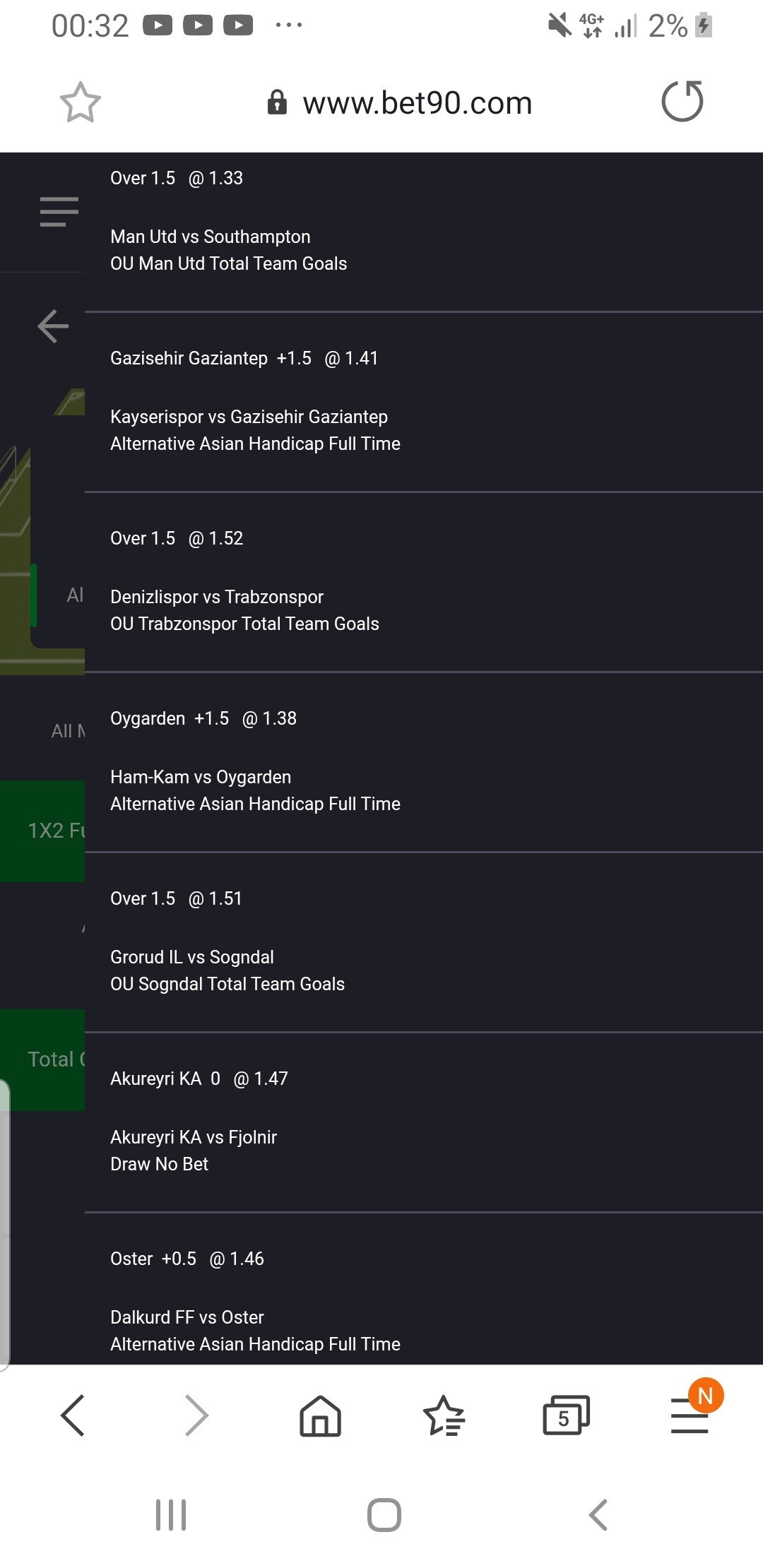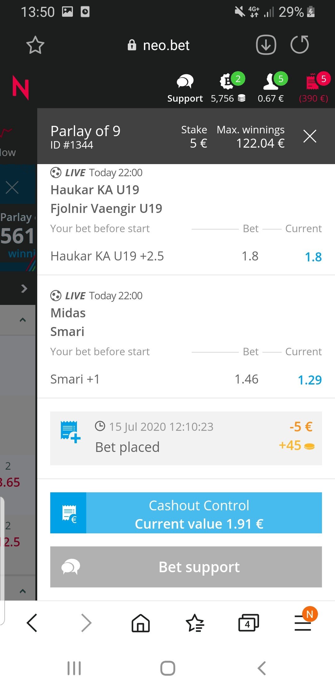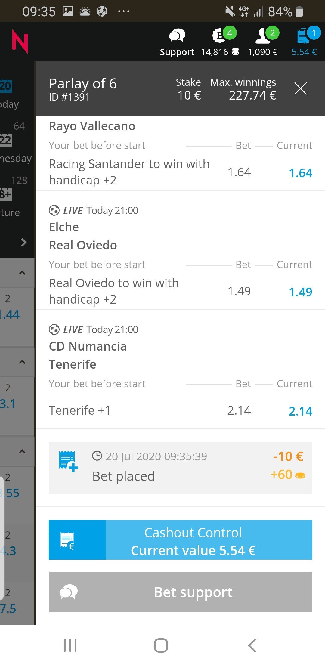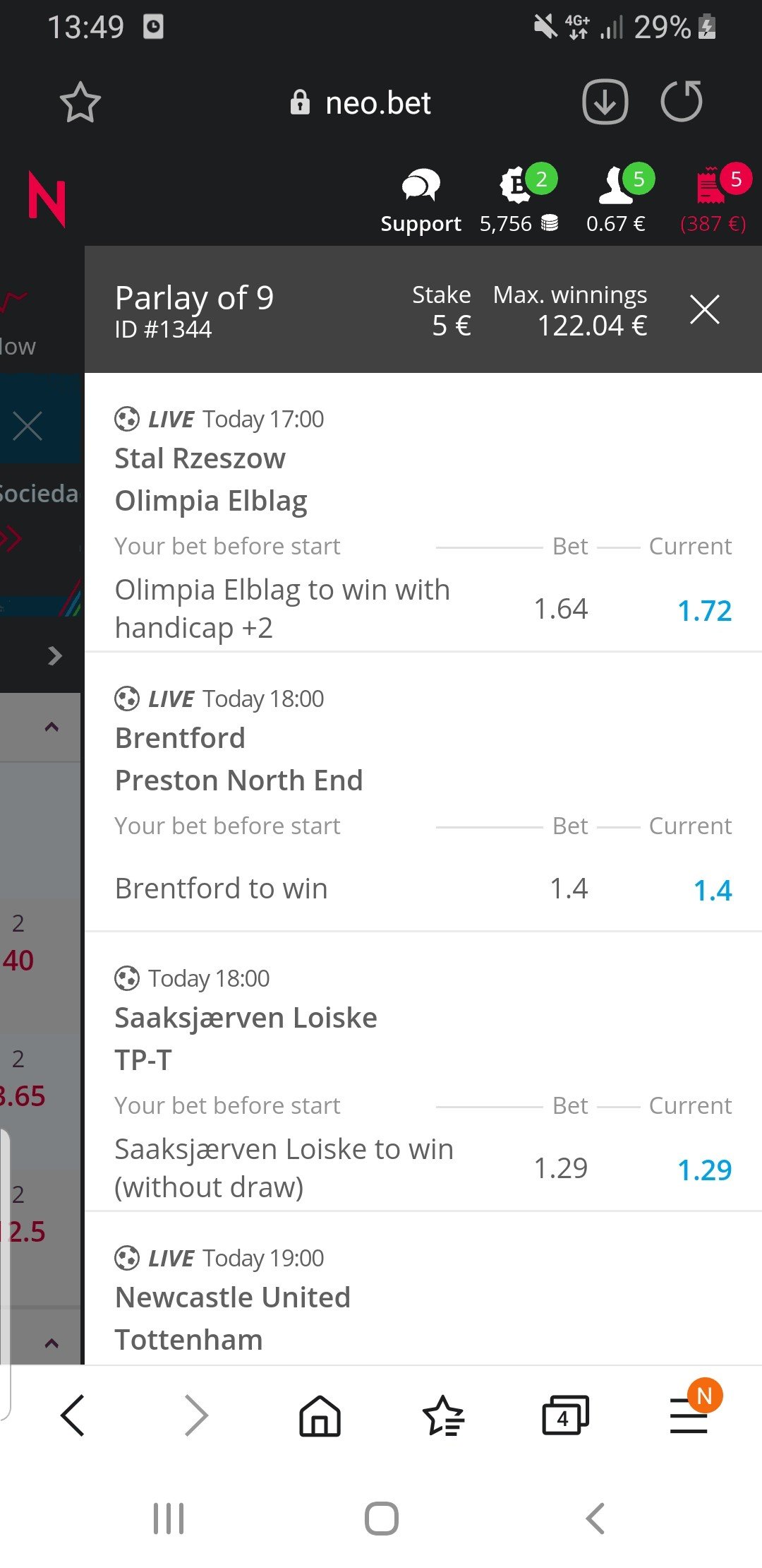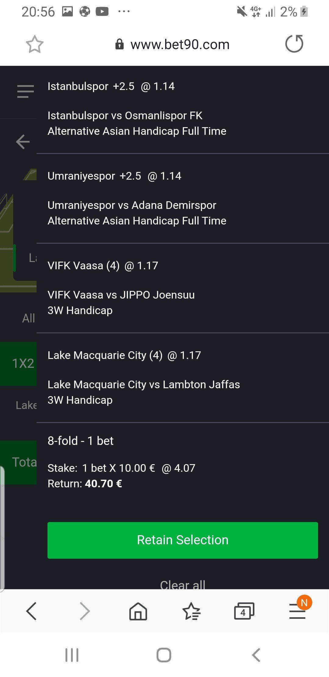 Hierboven de "safe" version ;) En als je de uitgebreidere versie wil (die heb ik ook) doe je Villarreal +0.5 hcp, Foutoua Club +1.5 hcp, Stjordals Blink +.1.5 hcp en Kasimpasa +0,5 hcp erbij. Dan heb je een 11 fold odd 42.