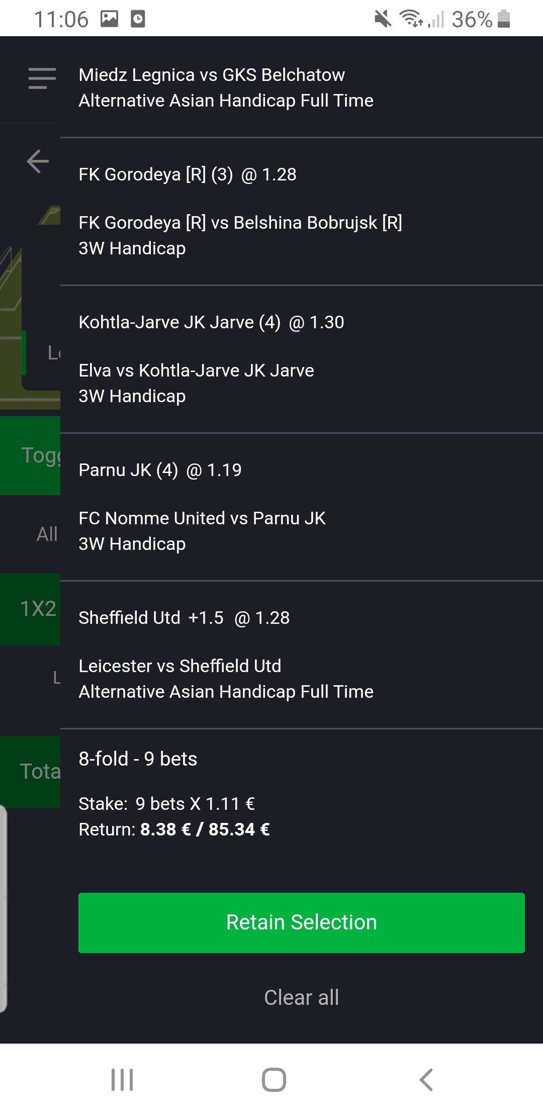 Ik ga ook een nieuwe challenge aan. Ik zet dezelfde 8 matches maar dan zo ruim als kan voor een redelijke odd en wil met de winst elke dag allin gaan op zo'n "ruime" combi.
