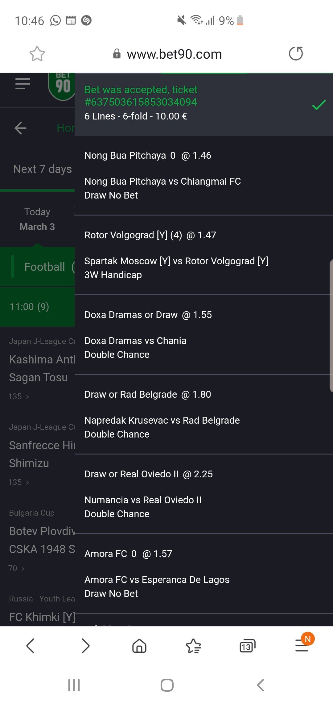 6 fold, voor de 4 fold halen we Spartak en Numancia weg.