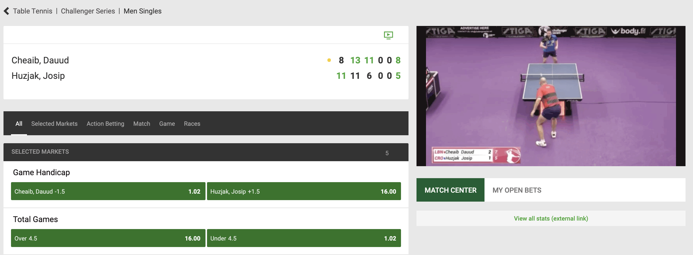 Geen voetbal, wel tafeltennis. Een zekerheidje dat Cheaib gaat winnen :)